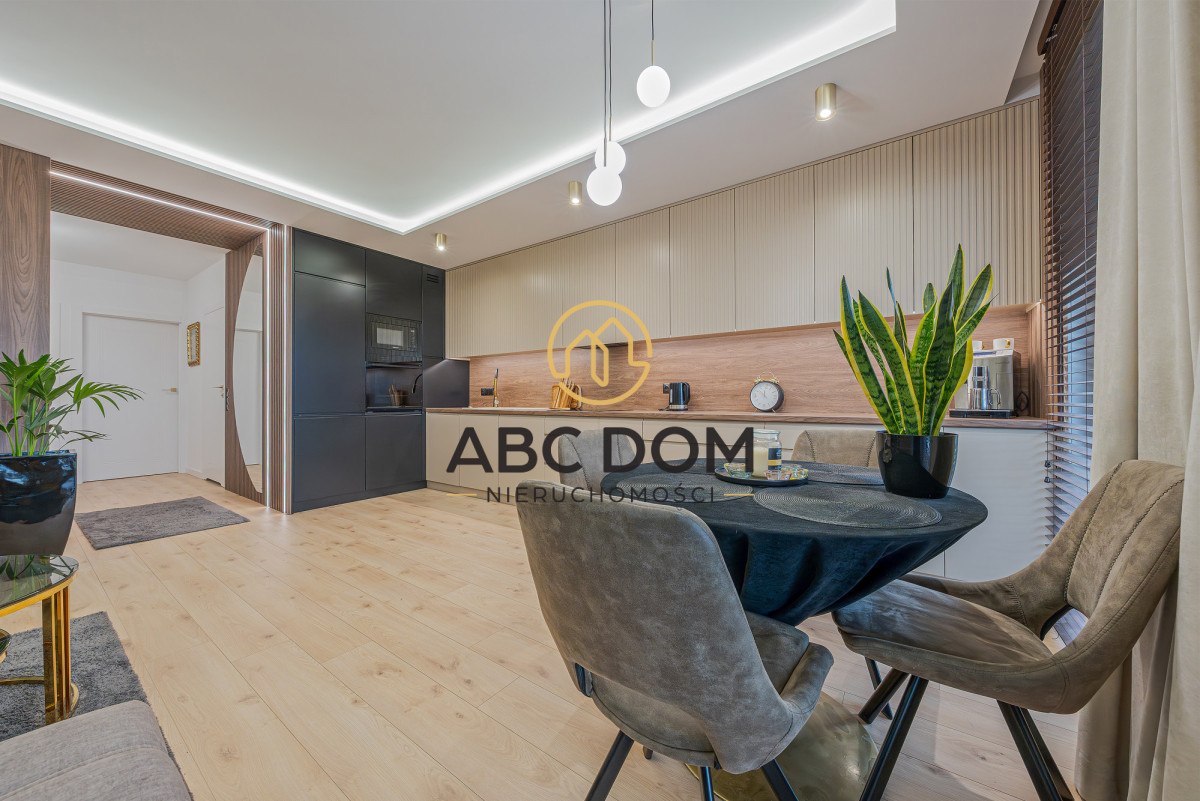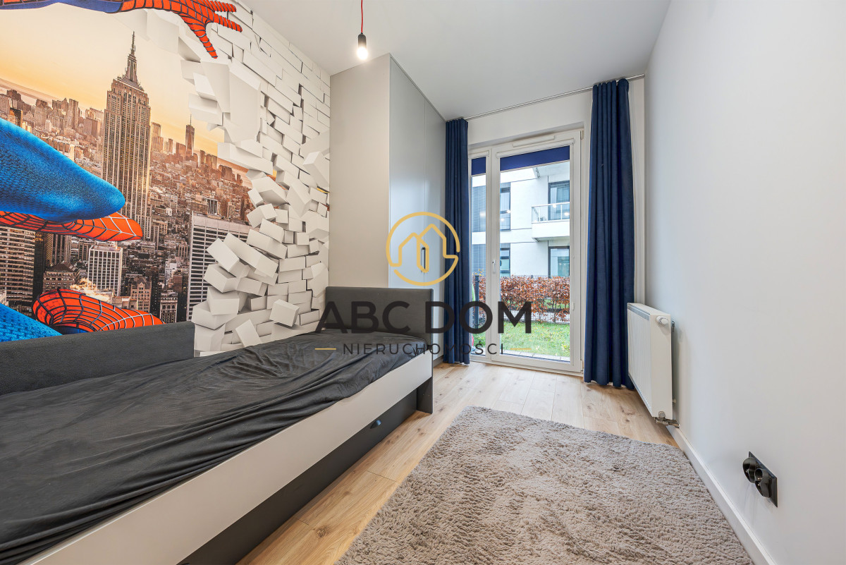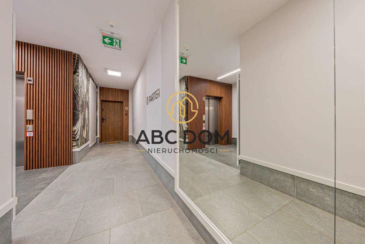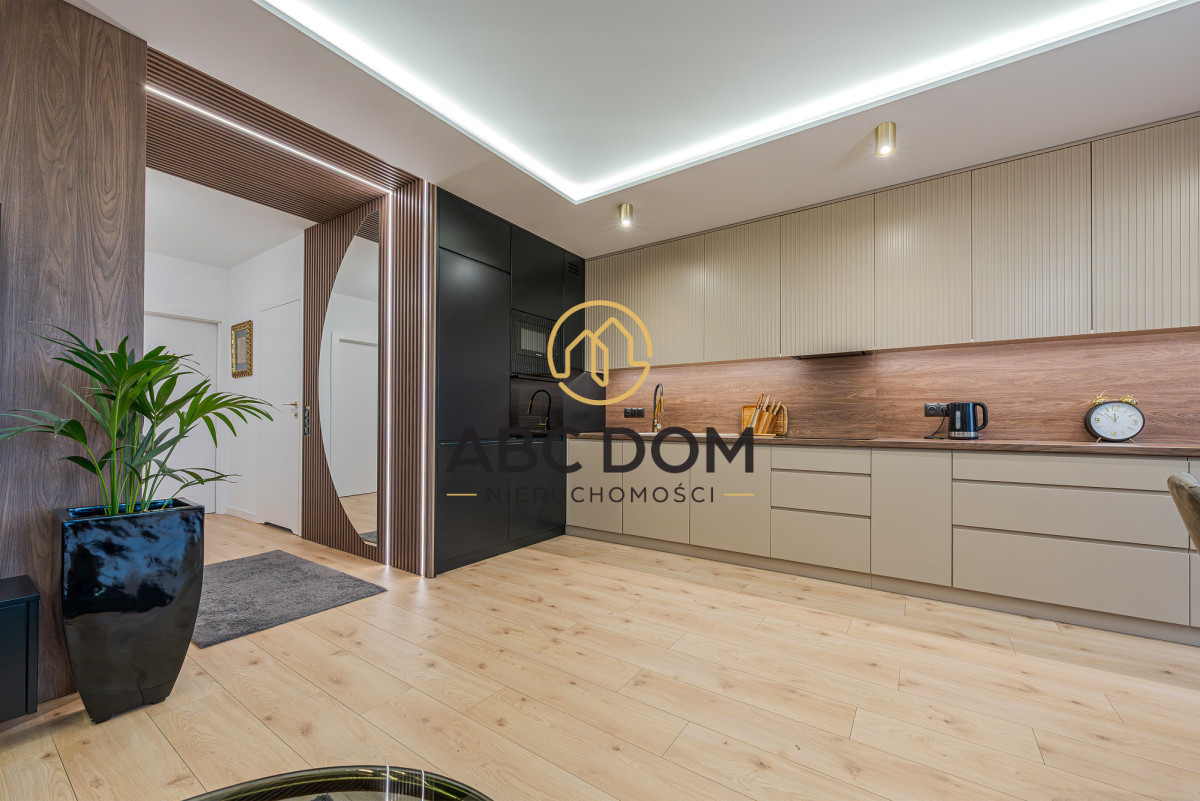 W salonie podwieszane sufity z oświetleniem LED. W każdym z pokoi oraz przedpokoju znajdują się obszerne szafy na wymiar do przechowywania rzeczy. Pomieszczenie gospodarcze posiada pralkę i suszarkę firmy Samsung i dodatkowe miejsce na art gospodarcze. Łazienka elegancka z dużą kabiną prysznicową typu walk-in, na podłodze położone zostały włoskie duże kafle. Wszystkie drzwi w mieszkaniu są firmy DRE.