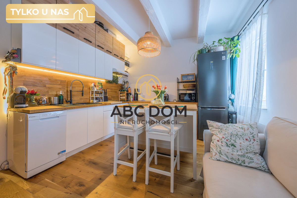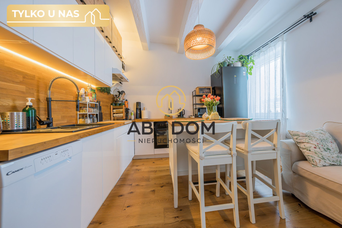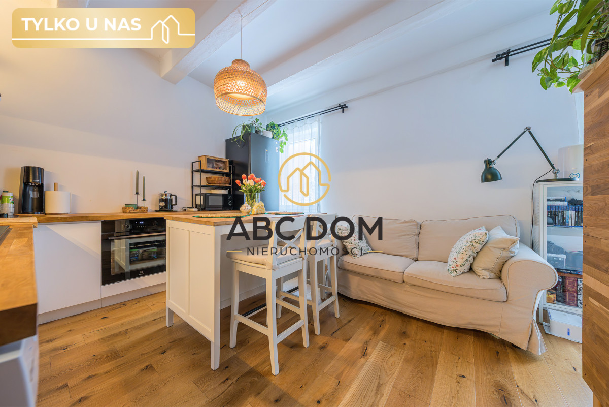 Mieszkanie zadbane, klimatyczne i dobrze utrzymane. Na podłogach panele. Okna nowe, plastikowe- wymienione w lipcu tamtego roku. Kuchnia nowoczesna- biała z dodatkiem ciepłego drewna. Wyposażona w dobry sprzęt (zmywarka, zamrażarka, piekarnik, płyta elektryczna i okap) Dodatkowo sofa i funkcjonalna wyspa gdzie wygodnie można usiąść i zjeść śniadanie. Pomysłowo wydzielona strefa sypialniana, w której mieści się łóżko z materacem oraz biurko do pracy. Łazienka z prysznicem, toaletą i małą umywalką. W przedpokoju pojemna garderoba. Mieszkanie bez obciążeń i zadłużeń. Idealne dla pary. Idealnie sprawdzi się również jako inwestycja- wynajem krótko lub długoterminowy. Zapraszam na prezentację
