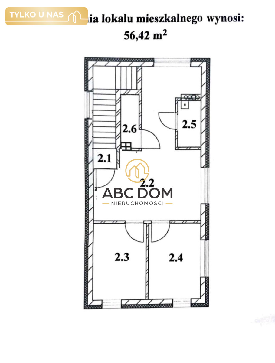 Powierzchnia lokalu (mieszkania oraz klatki schodowej) wynosi 56,42 m2.