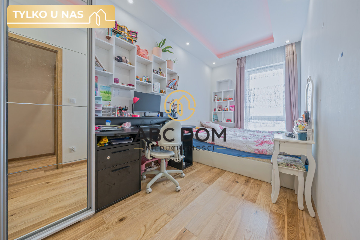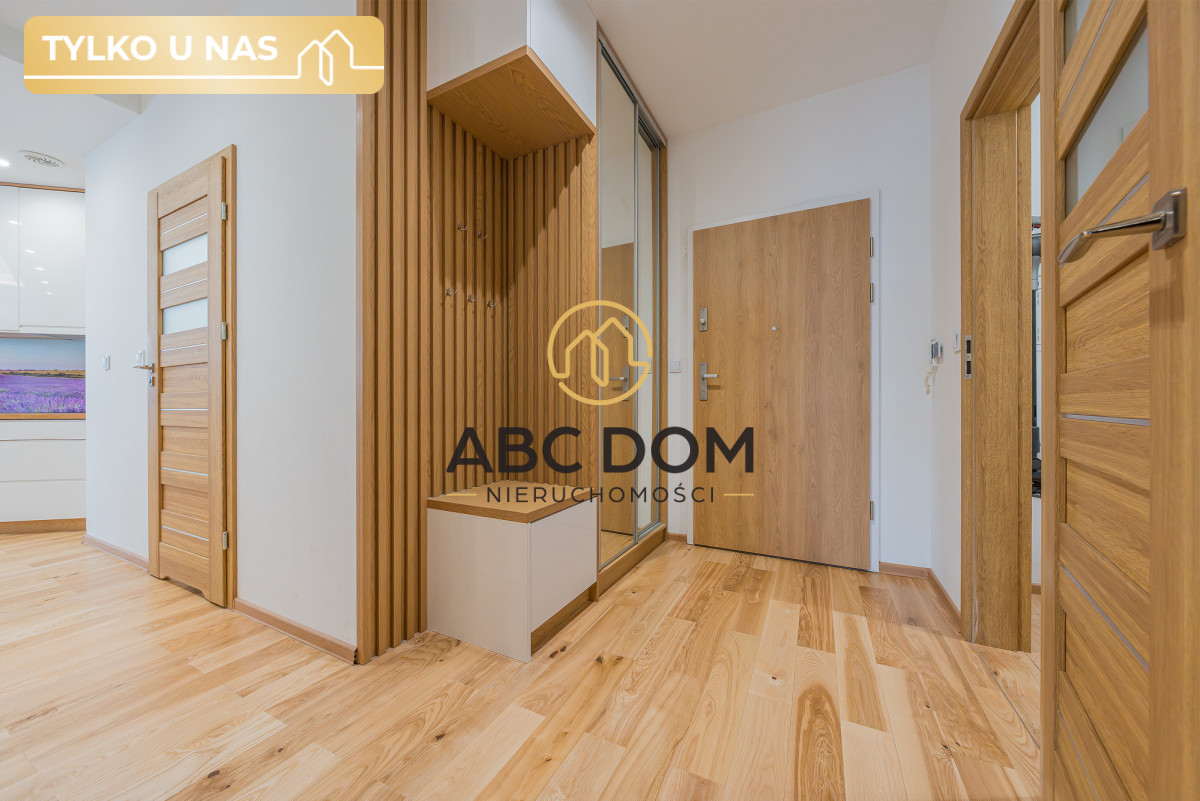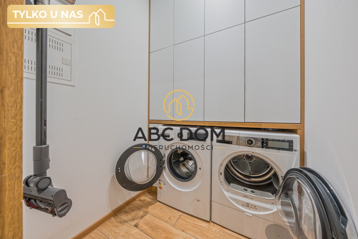 Wystrój całego mieszkania tworzy spójną całość dzięki dużej ilości drewna we wszystkich pomieszczeniach. Pokoje są dobrze doświetlone dzięki ilości wpadającego światła dziennego. W pomieszczeniu gospodarczym znajduje się pralka, suszarka oraz pojemne szafki w zabudowie.