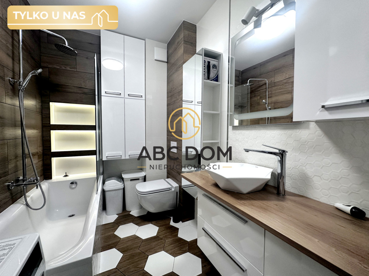Lokal o powierzchni 45, 60 m2 składa się z salonu z aneksem kuchennym, sypialni, łazienki oraz korytarza. Kuchnia wykonana na wymiar wraz ze sprzętem AGD dobrej jakości i dużą ilością blatu pomocniczego. W salonie drewniany stół z czterema krzesłami, kanapa narożna, szafa, oraz komoda z TV oraz stolik kawowy. W sypialni zabudowana szafa typu "komandor" z lustrem.